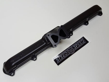 A beautifully crafted CNC billet steel masterpiece! Far superior performance than any other product. EGTs were 150 degrees lower than even the best aftermarket manifold while spooling the turbo faster with higher peak boost and 6 lbs less drive pressure. This manifold is one piece so will never leak and is easy on studs and gaskets. In normal service it shouldn’t need to be retorqued either. Expect long service life and the best fuel economy ever from this manifold.